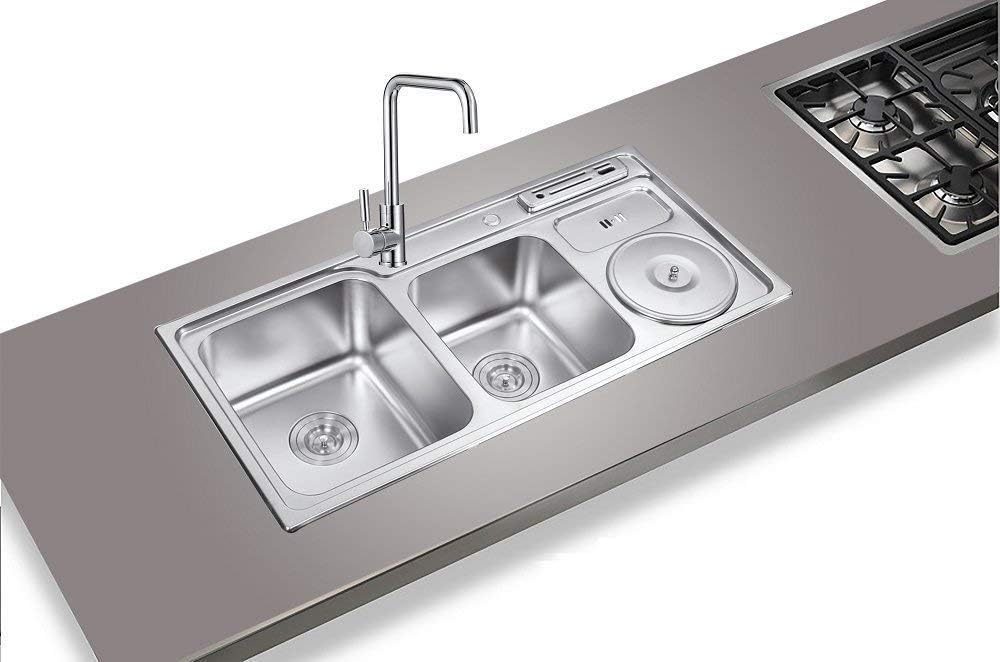 These double bowl double drain sinks have a beautiful brushed satin finish and sound deadening insulation. The ruvati low divide undermount is another great choice for a stainless steel kitchen sink, and could make a great addition to your home. One of the thugs that make it stand out is that it features a deep bowl to enhance ease of use and to ensure that you will not have water on the floor when cleaning utensils. Enter your email address to receive alerts when we have new listings available for double stainless steel kitchen sink. Hand made 250 mm extra depth for easy handle.